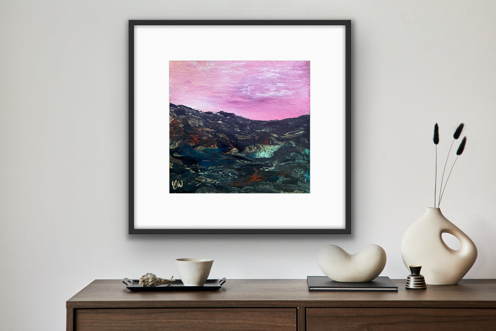 The Hills is a beautiful abstract landscape painting. Frames not included. 20 x 20 cm. Acrylic on paper. Requires framing. No returns on original artworks so please choose carefully.