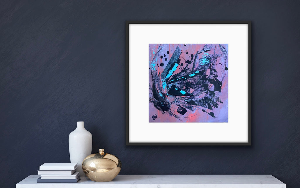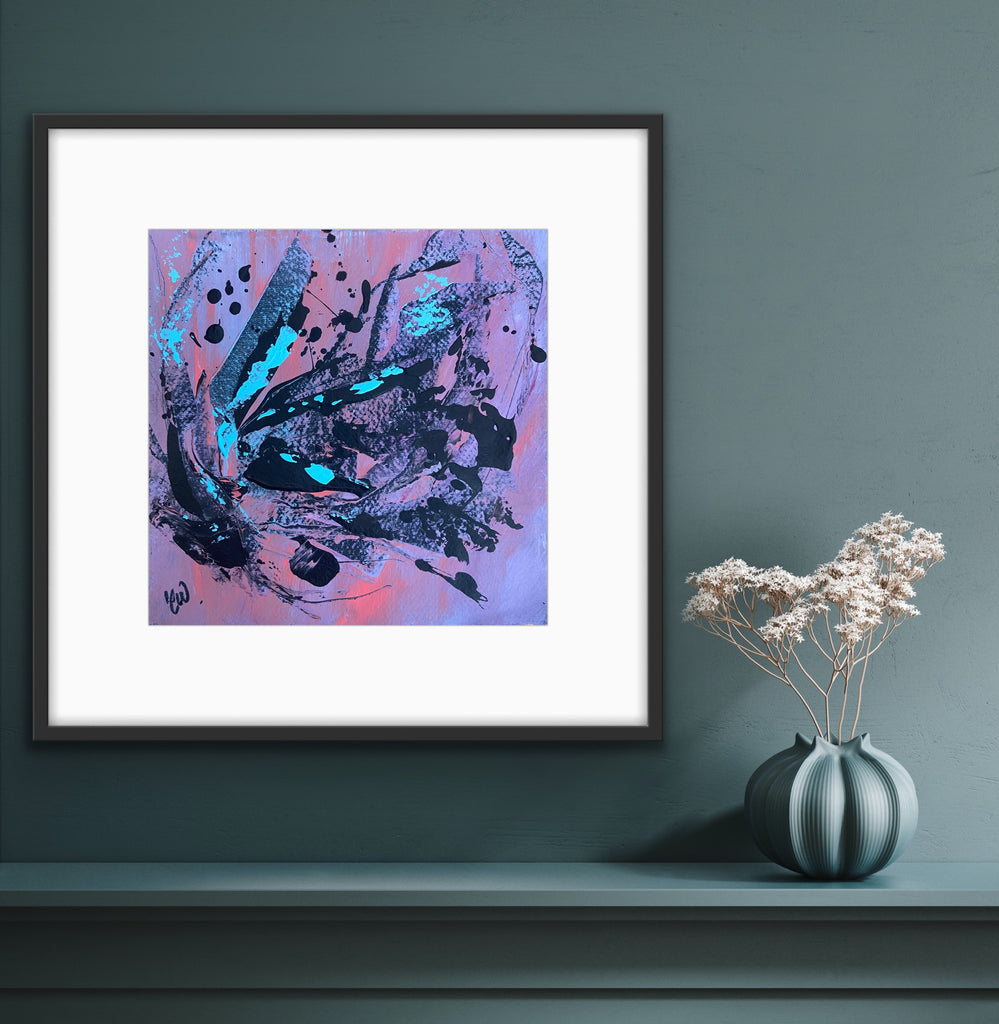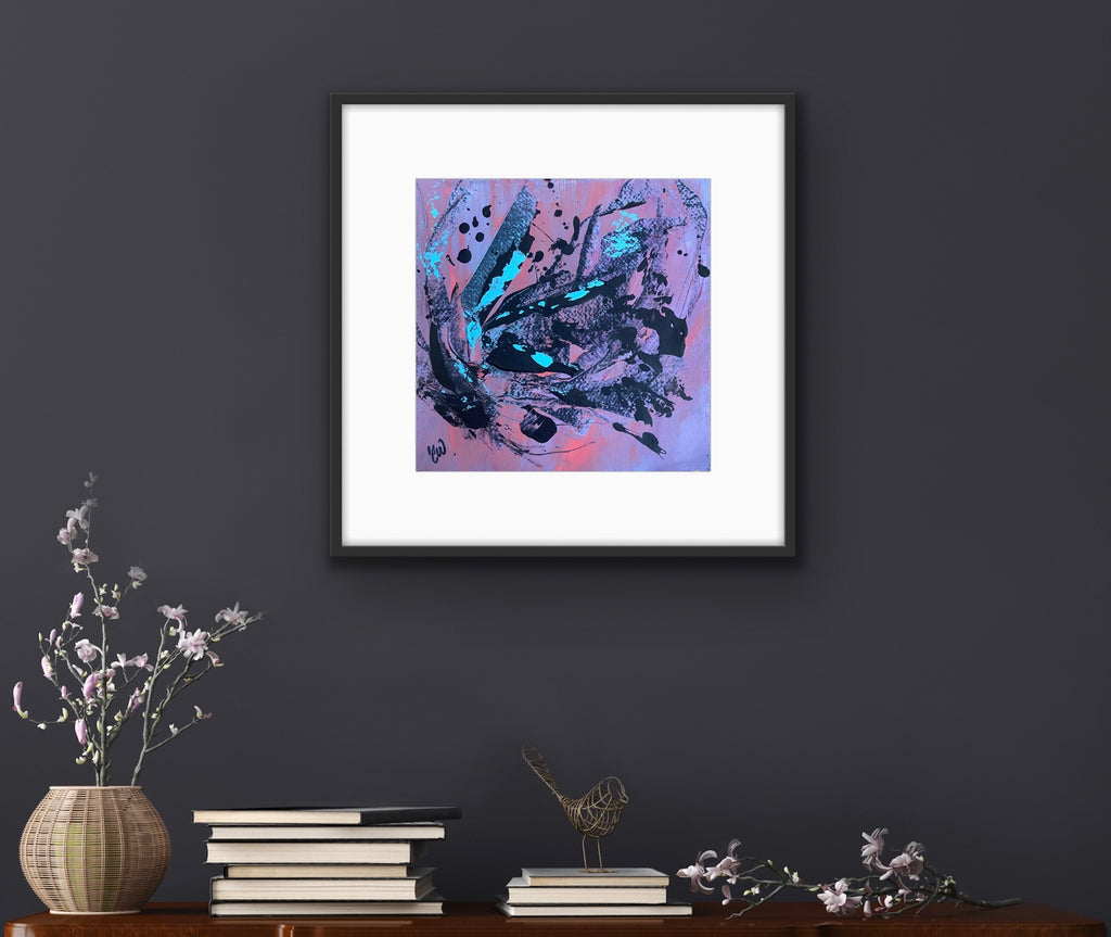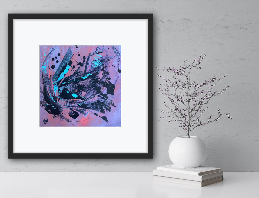 Thrilled is a beautiful and energetic abstract painting. Frames not included. 20 x 20 cm. Acrylic on paper. Requires framing. No returns on original artworks so please choose carefully.