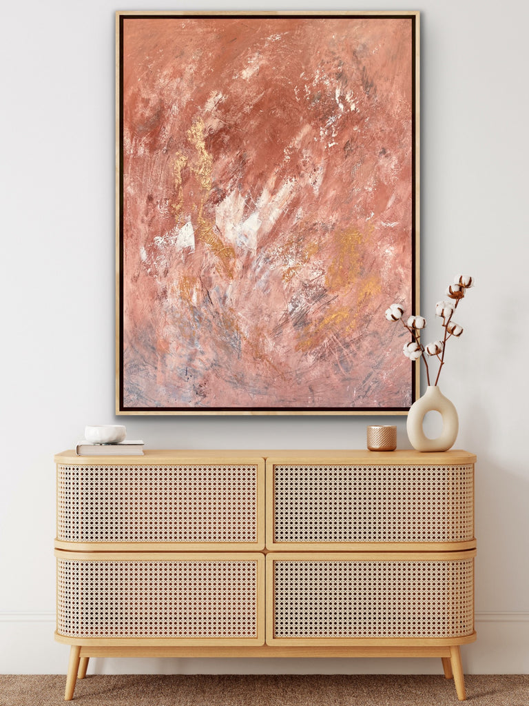 Tierra is a beautifully textured abstract painting with metallic bronze accents that shimmer in the light. 91.4 x 121.9 cm. Acrylic on canvas, ready to hang. Frame not included. No returns on original artworks so please choose carefully.