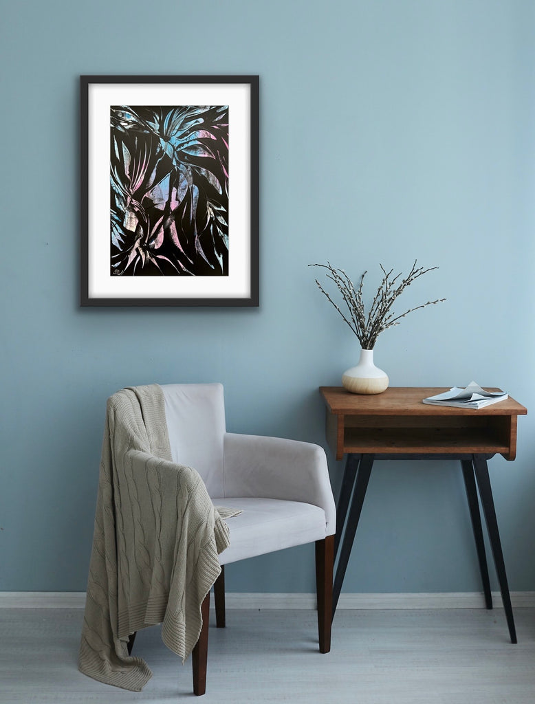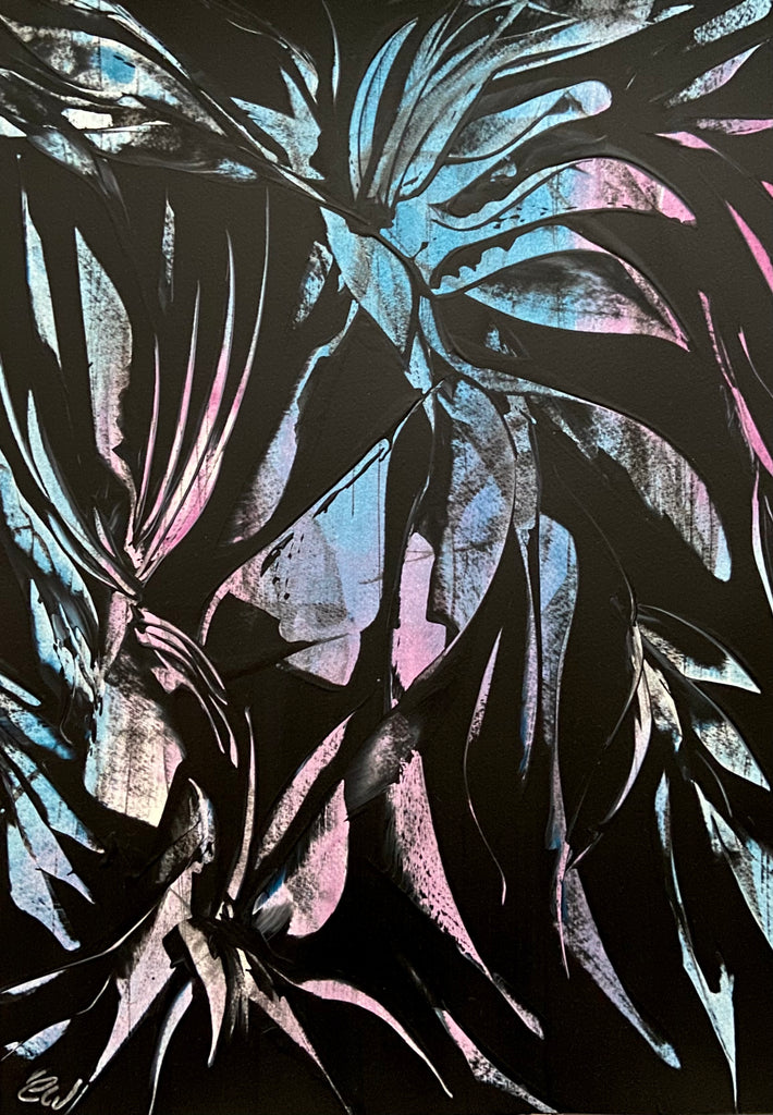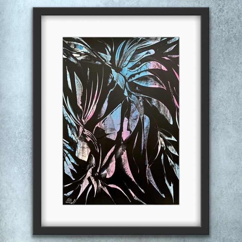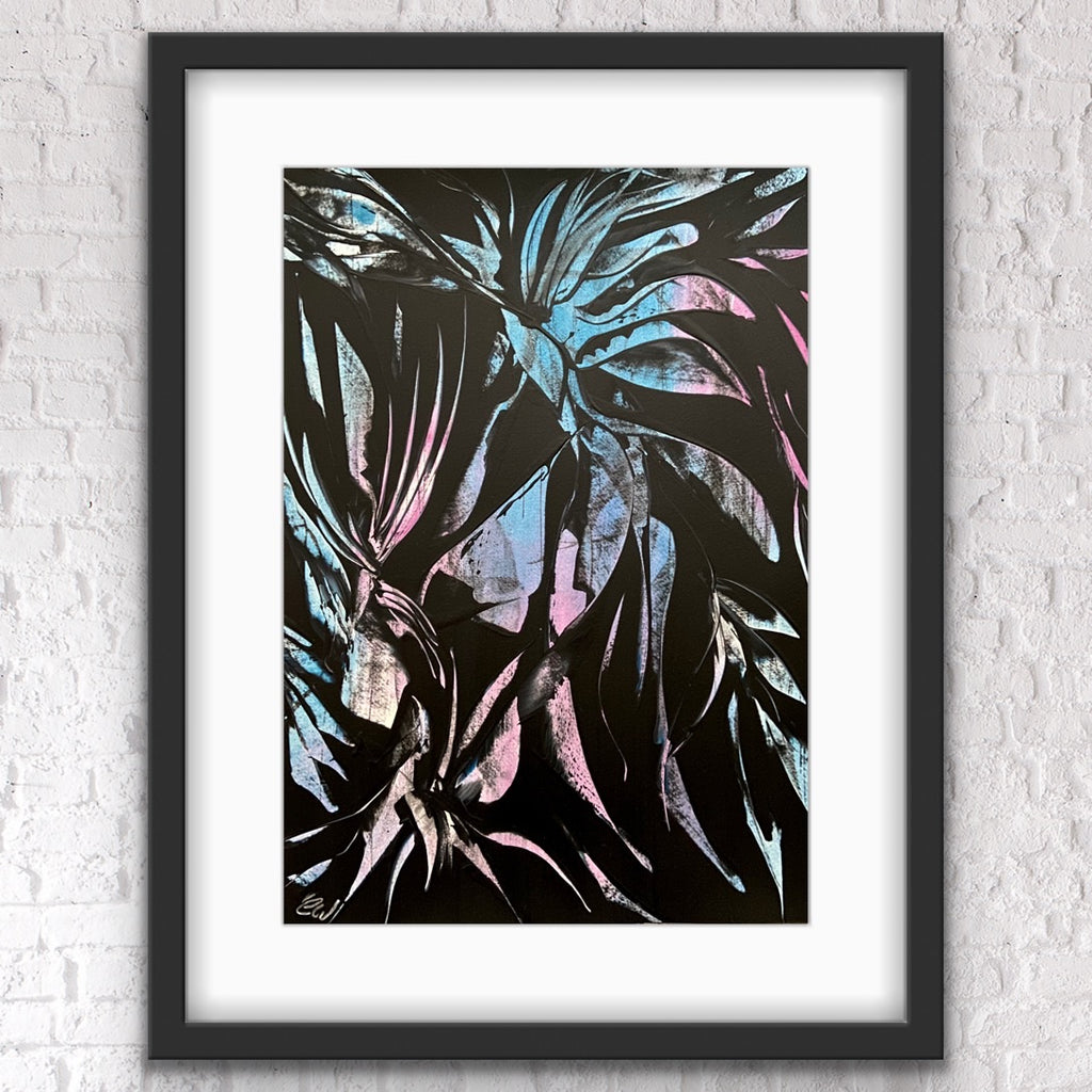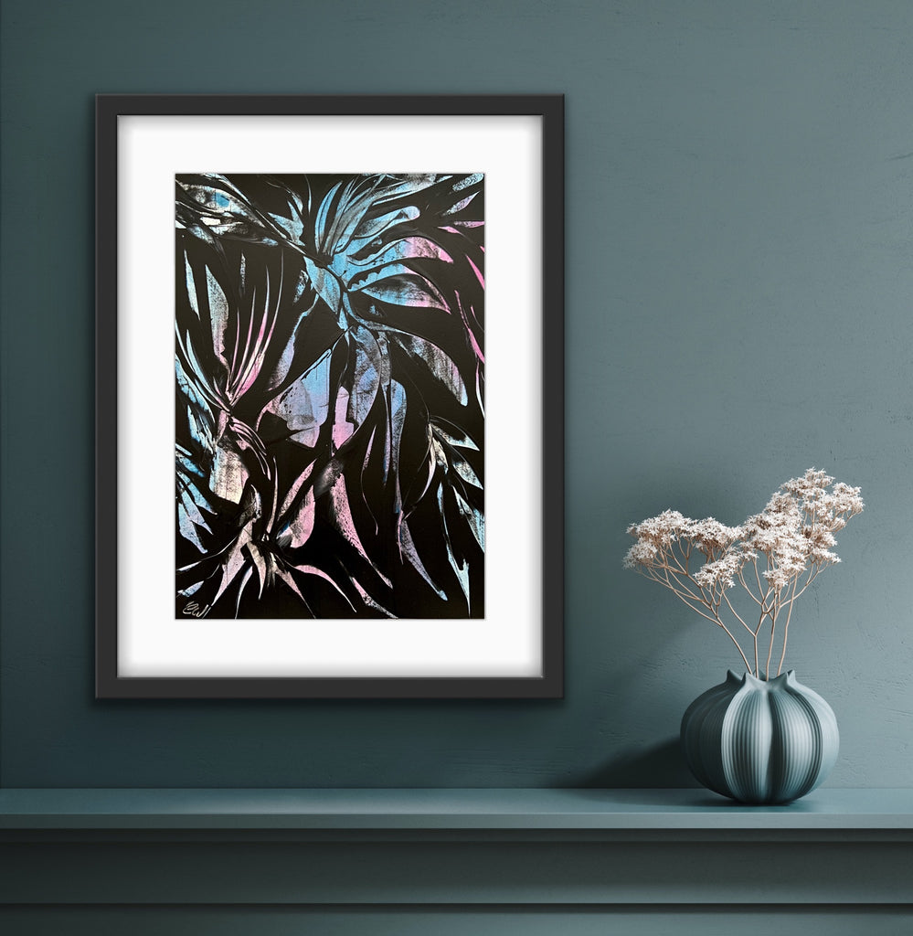 Twilight Garden is a beautiful abstract floral piece. This botanical painting will add life to any room in your home! Some images show what this piece looks like framed. Frames not included. 29.7 x 42 cm (A3 size) Acrylic on paper. Requires framing. No returns on original artworks so please choose carefully.
