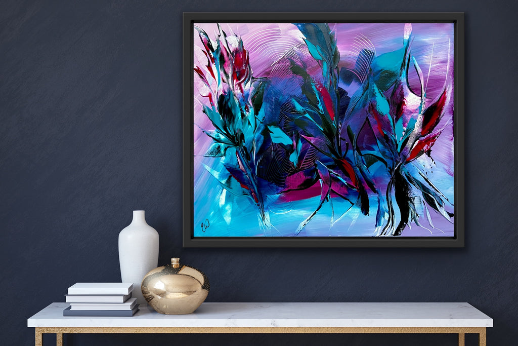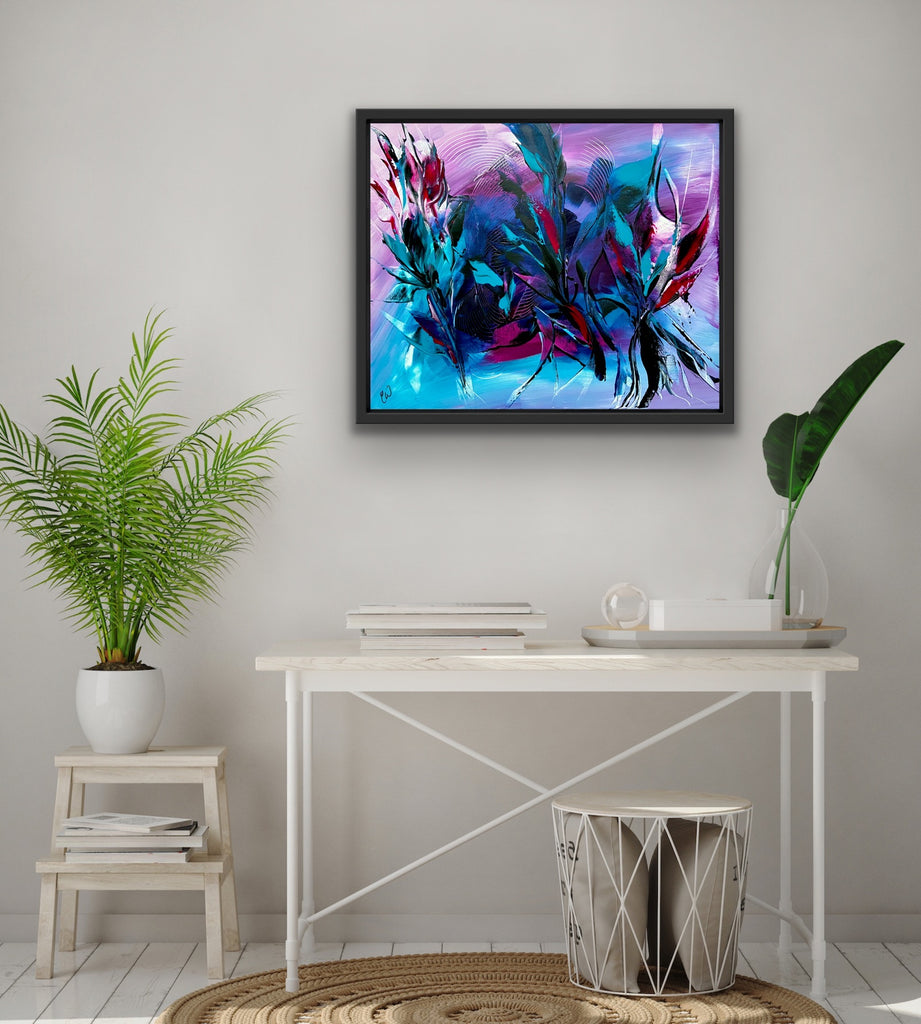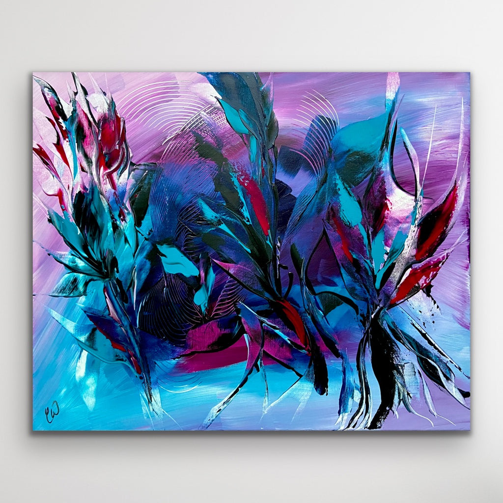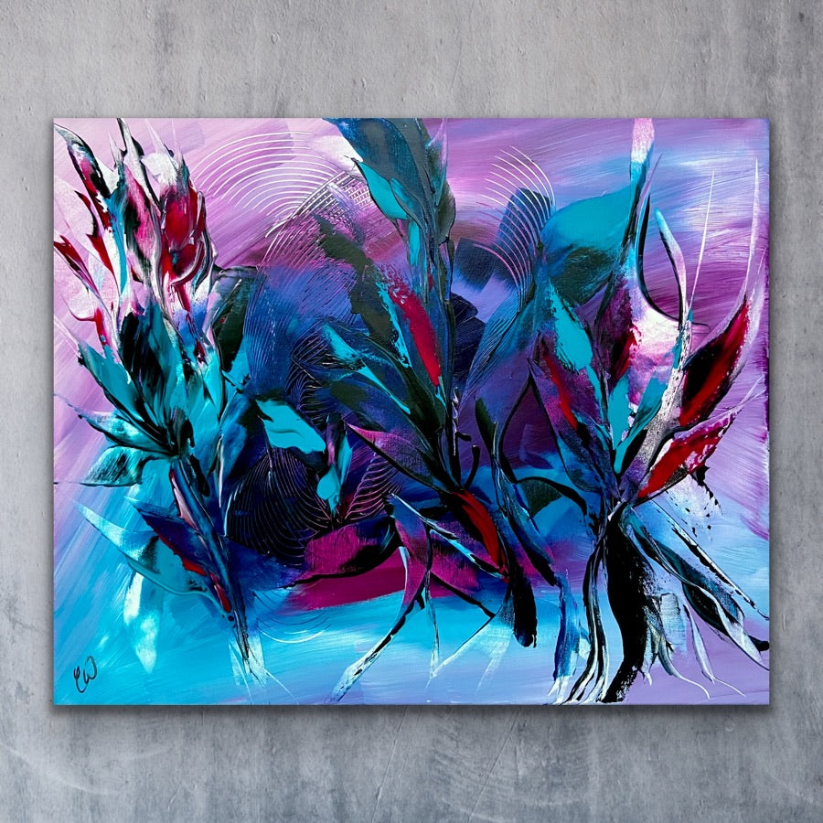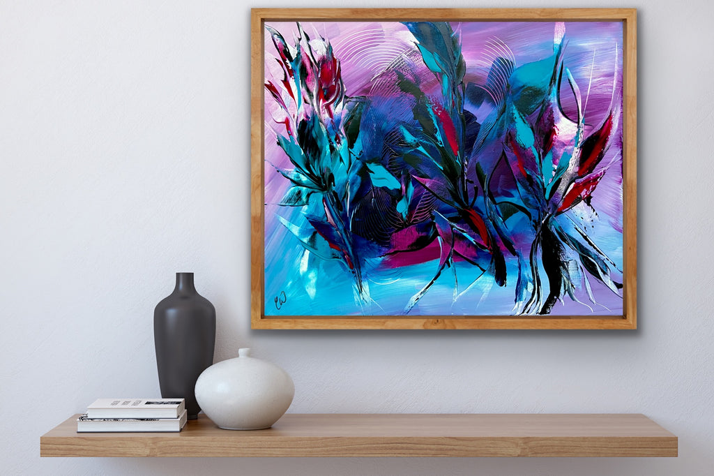 Wild is a very beautiful and striking abstract piece with a stunning colour combination that will lift and space! 60 x 50 cm. Acrylic on canvas, ready to hang. Some images show what this painting will look like framed. Frames not included. Watch how this painting was made on my YouTube! Link to my YouTube is on the home page. No returns on original artworks so please choose carefully.