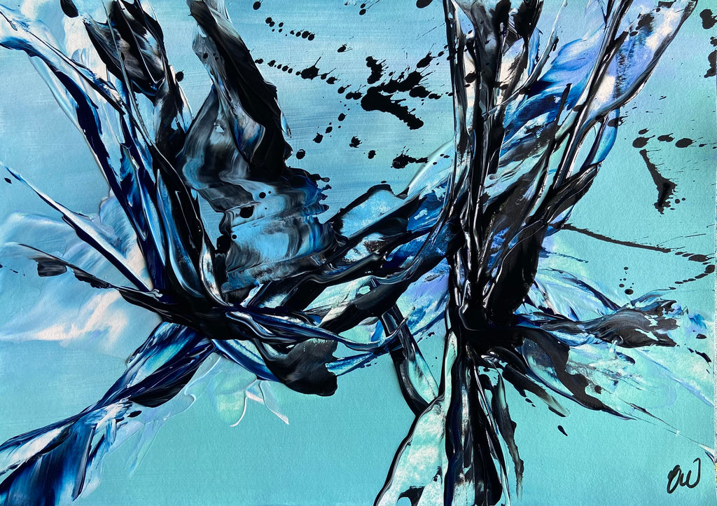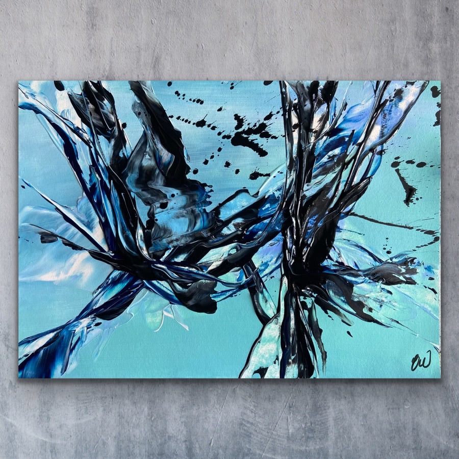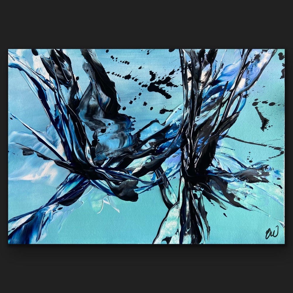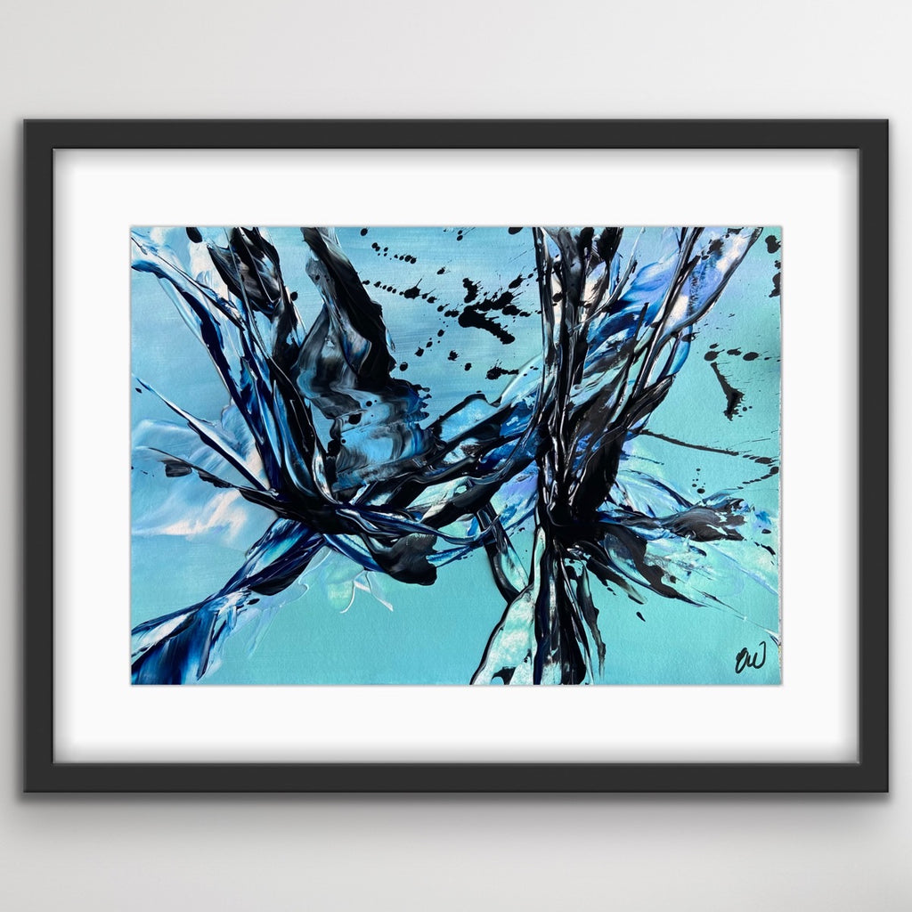 Wild Ride is a beautiful abstract with deep colours and lots of captured movement. 29.7 x 42 cm (A3 size) Acrylic on paper. Requires framing. (One image shows what this piece looks like framed. Frame not included) Watch how this painting was made on my YouTube channel! Link to my YouTube is on the home page. No returns on original artworks so please choose carefully.
