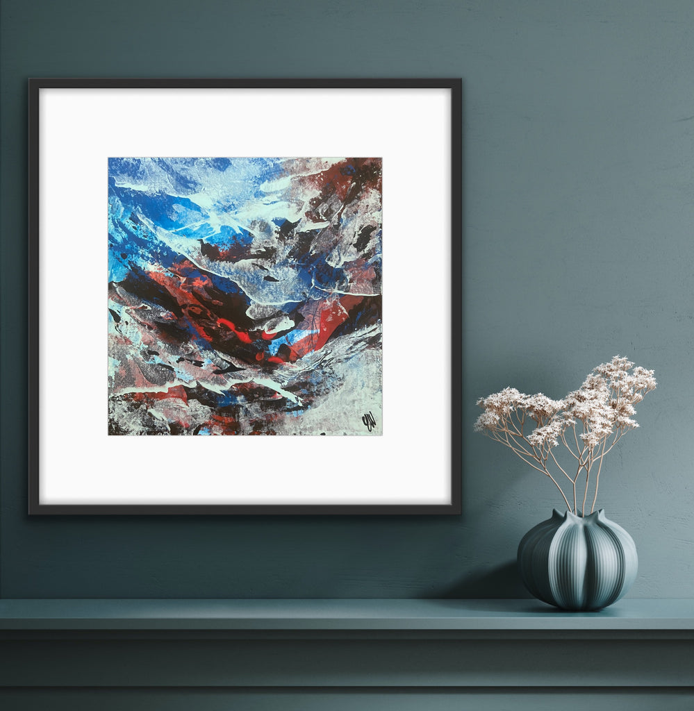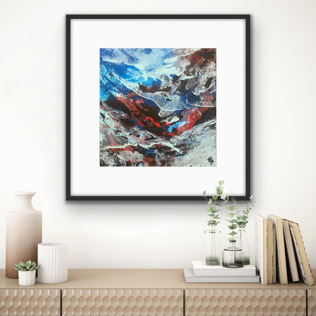 Zeal is a beautiful abstract painting. 20 x 20 cm. Acrylic on paper. Frame not included. Requires framing. No returns on original artworks so please choose carefully.
